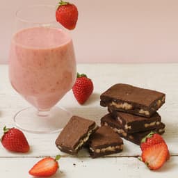 ●オリジナルチョコを使ったブラウニー生地に、いちご風味のチップをサンドし焼き上げました。